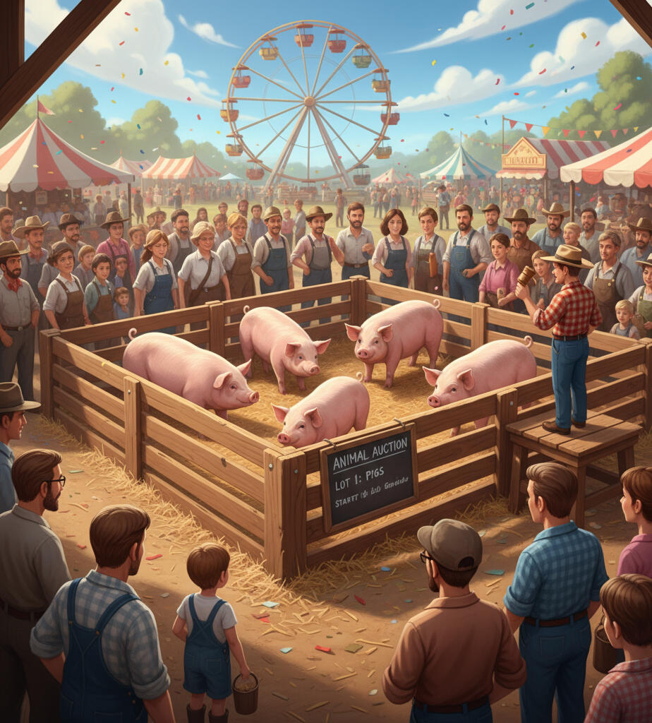 🐖 Run farm animal auctions and quirky fashion shows.